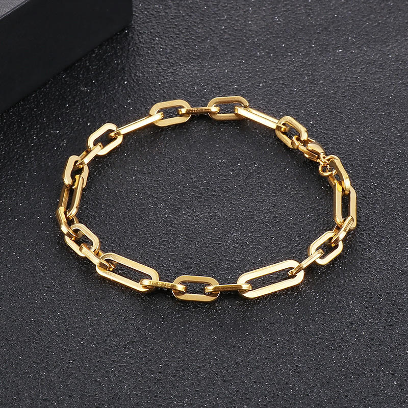 KALEN 200mm Stainless Steel Oval Link Bracelet – Casual Gold & Silver Color Jewelry